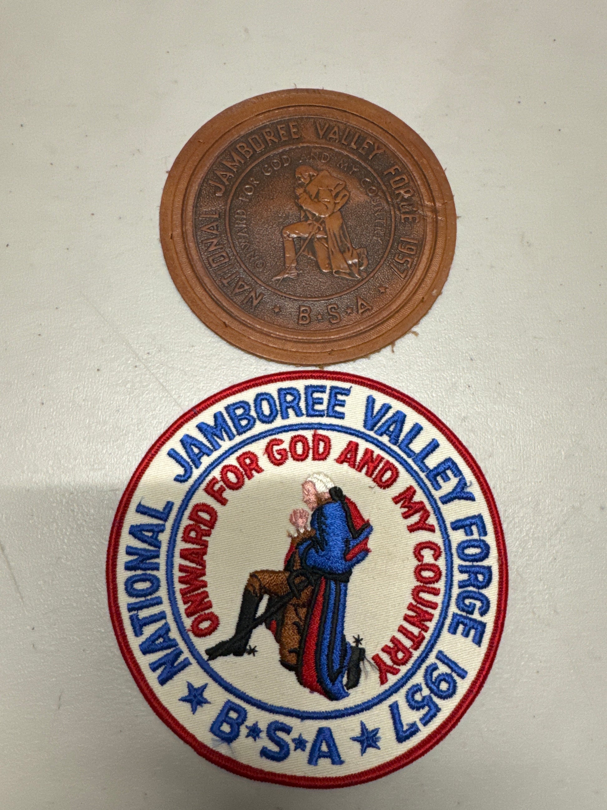 1957 National Jamboree Valley Forge Backpack/ Jacket Patch & Leather Patch